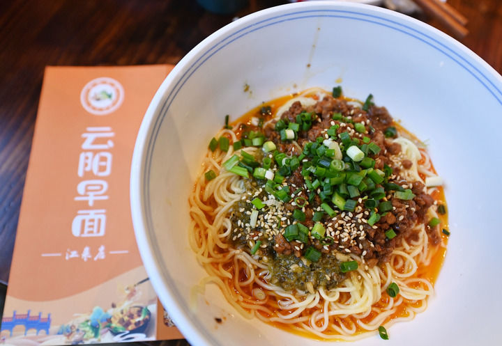 这是11月4日在云阳早面餐厅拍摄的炸酱面。云阳早面是云阳县打造的面食品牌之一。新华社记者 肖潇 摄