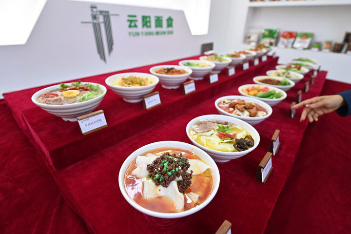 这是11月4日在重庆农高宏霖食品有限公司拍摄的各种口味的面条模型展示。新华社记者 肖潇 摄