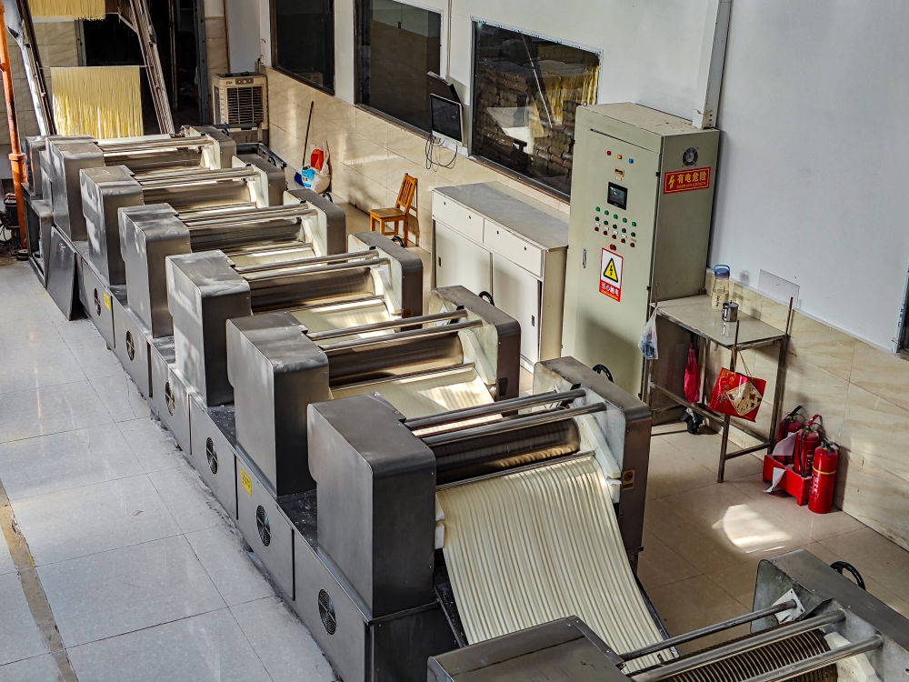 就这样,父子、夫妻,老乡带老乡,第一批云阳面工陆续走出云阳,看到生意好做,他们回来跟机械商说,马达能不能换电动的——就这样,设备不断升级,面条产量也就逐渐增加。云阳的鲜面条从原来的“半手工半自动”,到后来的全自动,40多年过去,现在的“5.0”版本小作坊里,一人可以操控几台机器。过去,3个人一天到晚做,一年赚个2万块钱已经不错了,现在有的企业年产值已超10亿元。